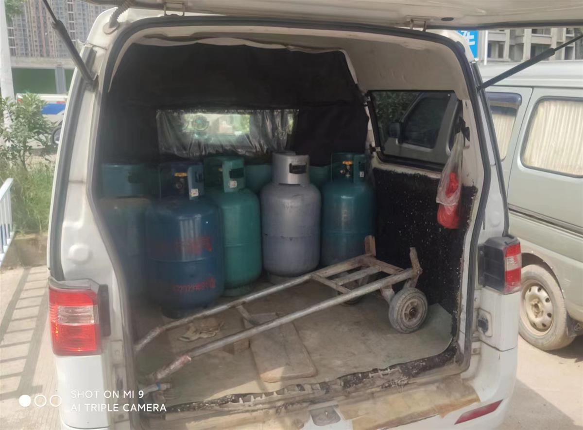 下午3点30分左右,巡查人员在该花木交易市场停车场内发现了疑似车辆,经对比市民反映的线索后,很快就确定了嫌疑目标。4位巡查人员迅速出动逮住涉事人员,只见面包车里赫然放着6个燃气钢瓶,涉事人员承认了非法运输燃气钢瓶的事实。