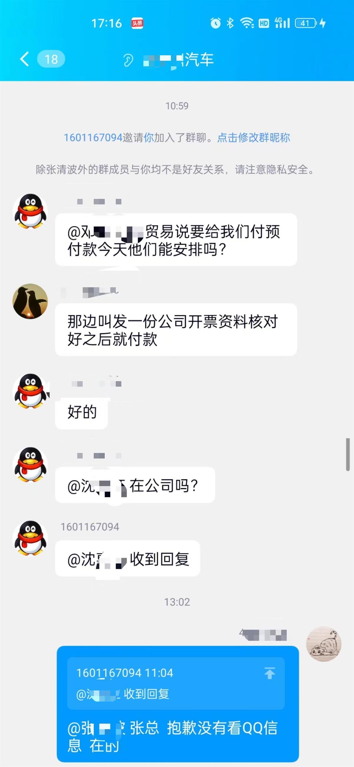 3月20日上午,位于武汉市汉阳区黄金口汽车市场一家4S店的会计沈女士正在工作时,突然手机QQ收到了一条添加好友的信息,一看是公司老板张总,因为此前没有张总QQ号好友,于是沈女士便没有怀疑,立即通过了好友添加。