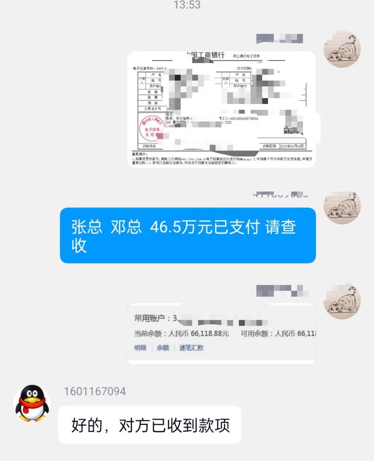 这个所谓的 “张总”将沈女士拉进了一个公司工作QQ群,除了“张总”以外,还有一名公司的另一个股东“邓总”。刚入群没多久,“张总”就在群内称有一笔100万的款项要进账,让沈女士将公司开票信息发到群内,“邓总”跟进,没多久“邓总”便将电子回单发到群内。沈女士向“邓总”汇报并未收到入账通知,“邓总”表示跨行转账有延迟,沈女士并未起疑心。