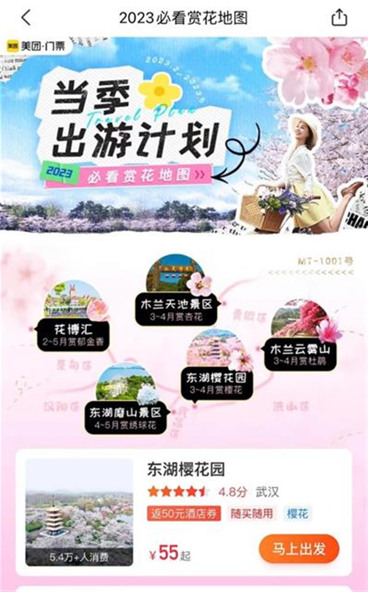 “必看赏花地图”帮消费者更便捷地找到“赏花好去处” (图片来源:美团App截图)