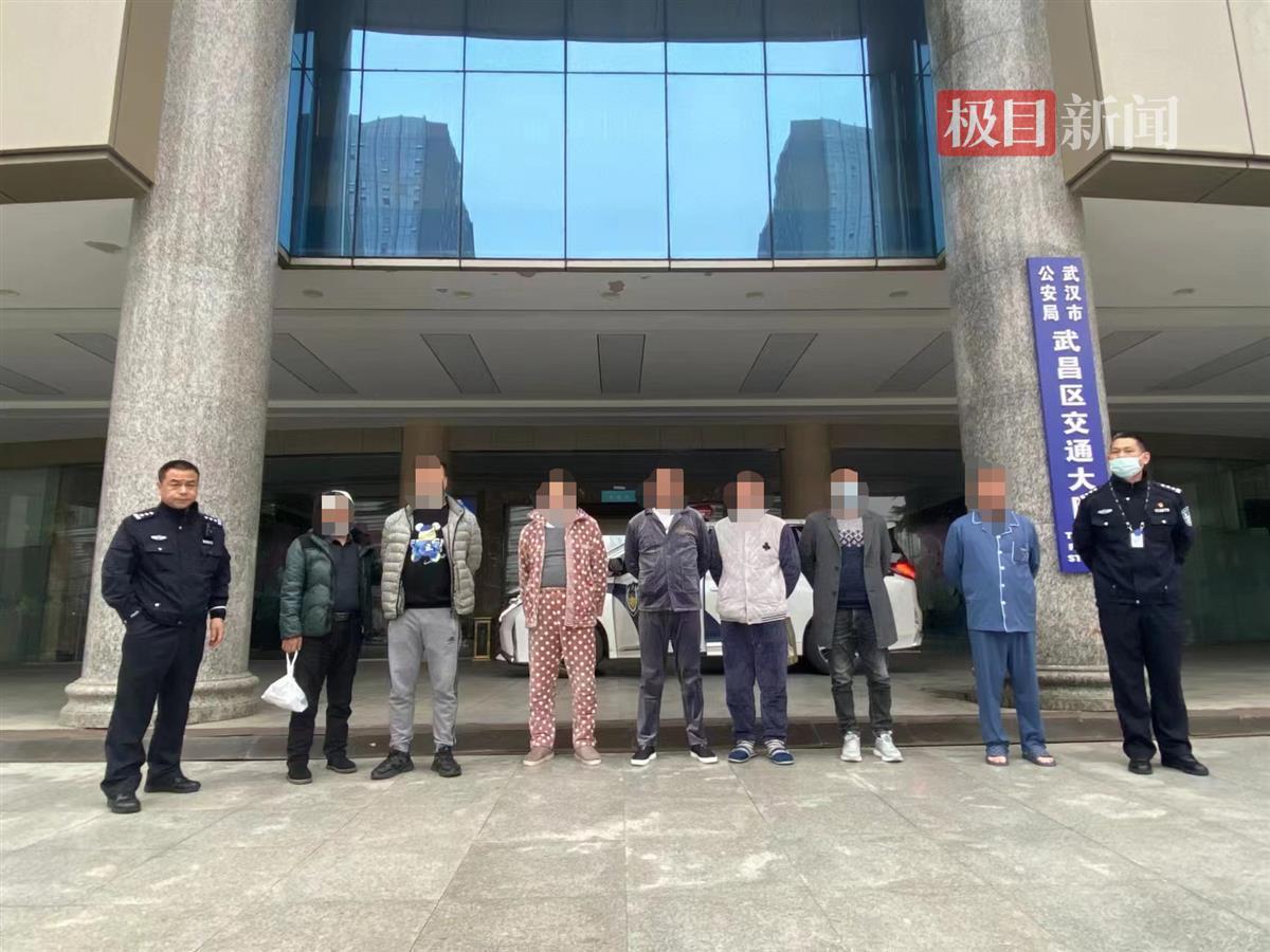 图为武昌交警把7名严重交通违法行为人送往拘留所(通讯员供图)