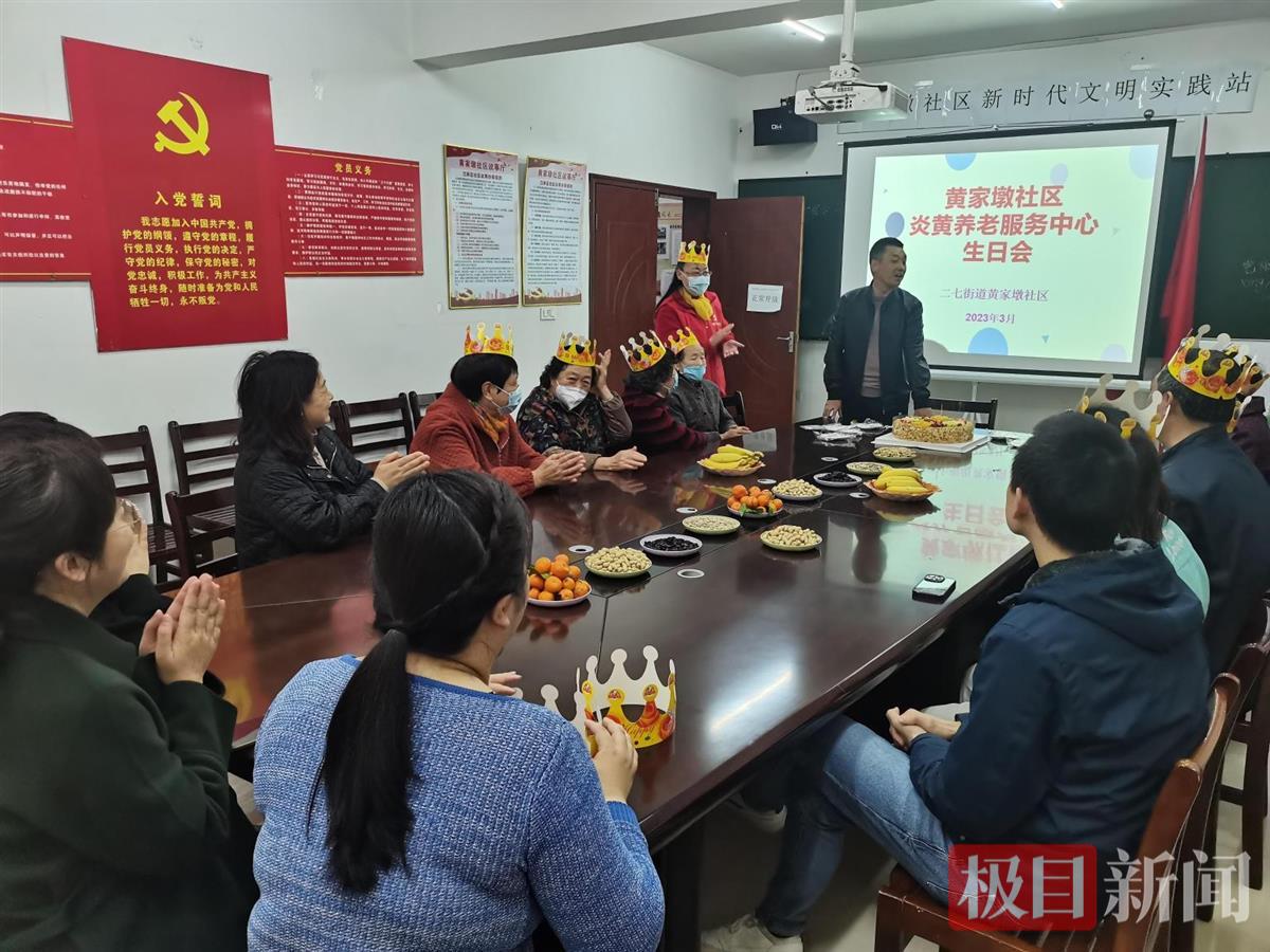 3月28日,武汉市江岸区二七街道黄家墩社区携手炎黄养老服务中心开展“生日有你,欢乐同在”2023年第一季度长者集体生日会。生日会上,寿星们和社区老党员、社区志愿者们围坐在一起,高高兴兴地庆祝生日。