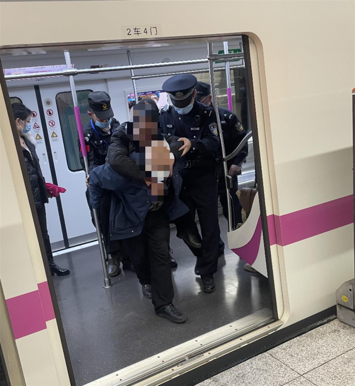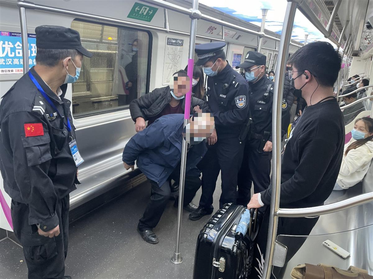 4月3日,一位老人因低血糖晕倒在地铁车厢。闻讯,武汉轨道警方迅速调看监控,在确定老人所乘的车次和车厢后,及时赶到站台等候。列车一进站,民辅警迅速冲进车厢,及时救助老人。