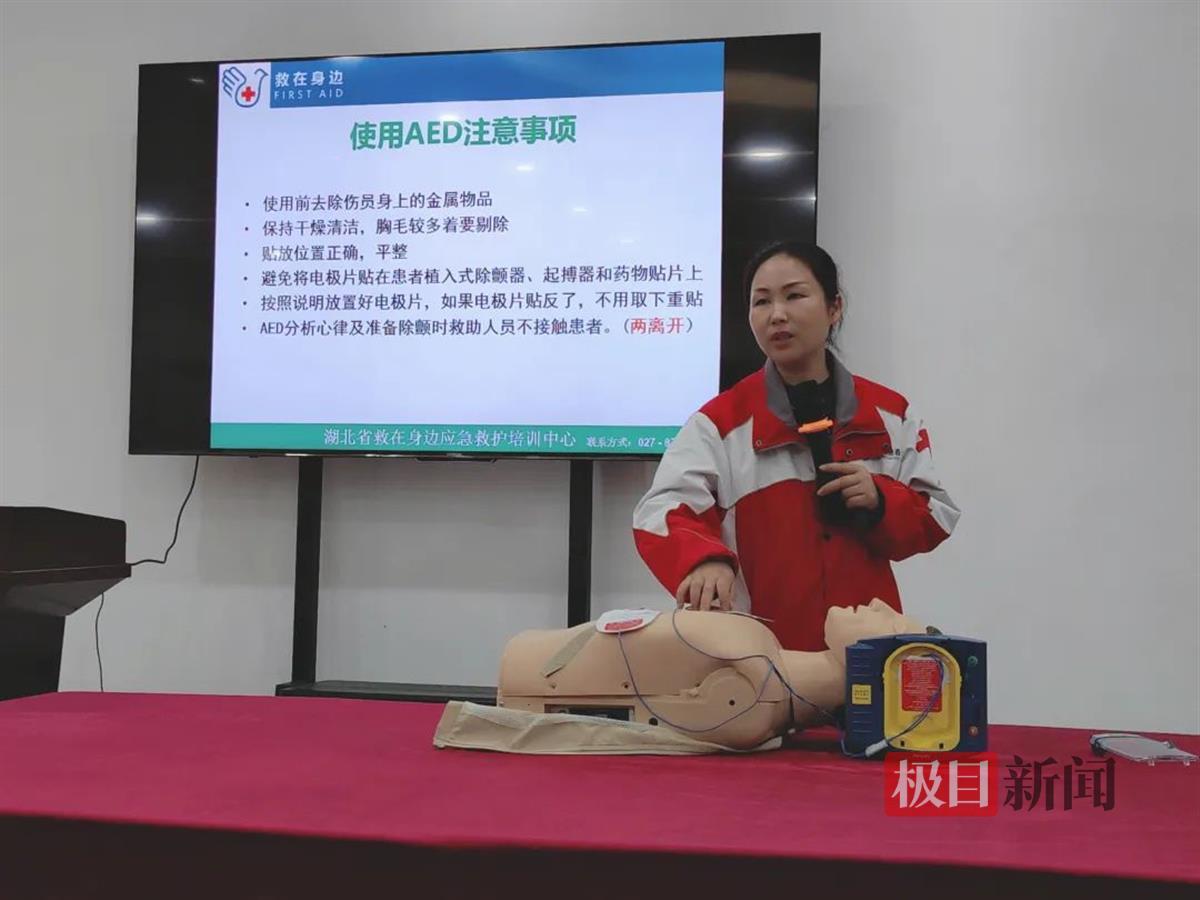 “面对突发状况,时间就是生命,掌握抢救的黄金时机至关重要。”活动现场,湖北省应急救护培训中心救护培训师龙琴阐述了应急救护知识的必要性。她向参训人员详细讲解了突发状况下的心肺复苏、气道异物梗阻海默立刻急救法等相关急救知识,着力引导群众掌握必备的急救技巧。
