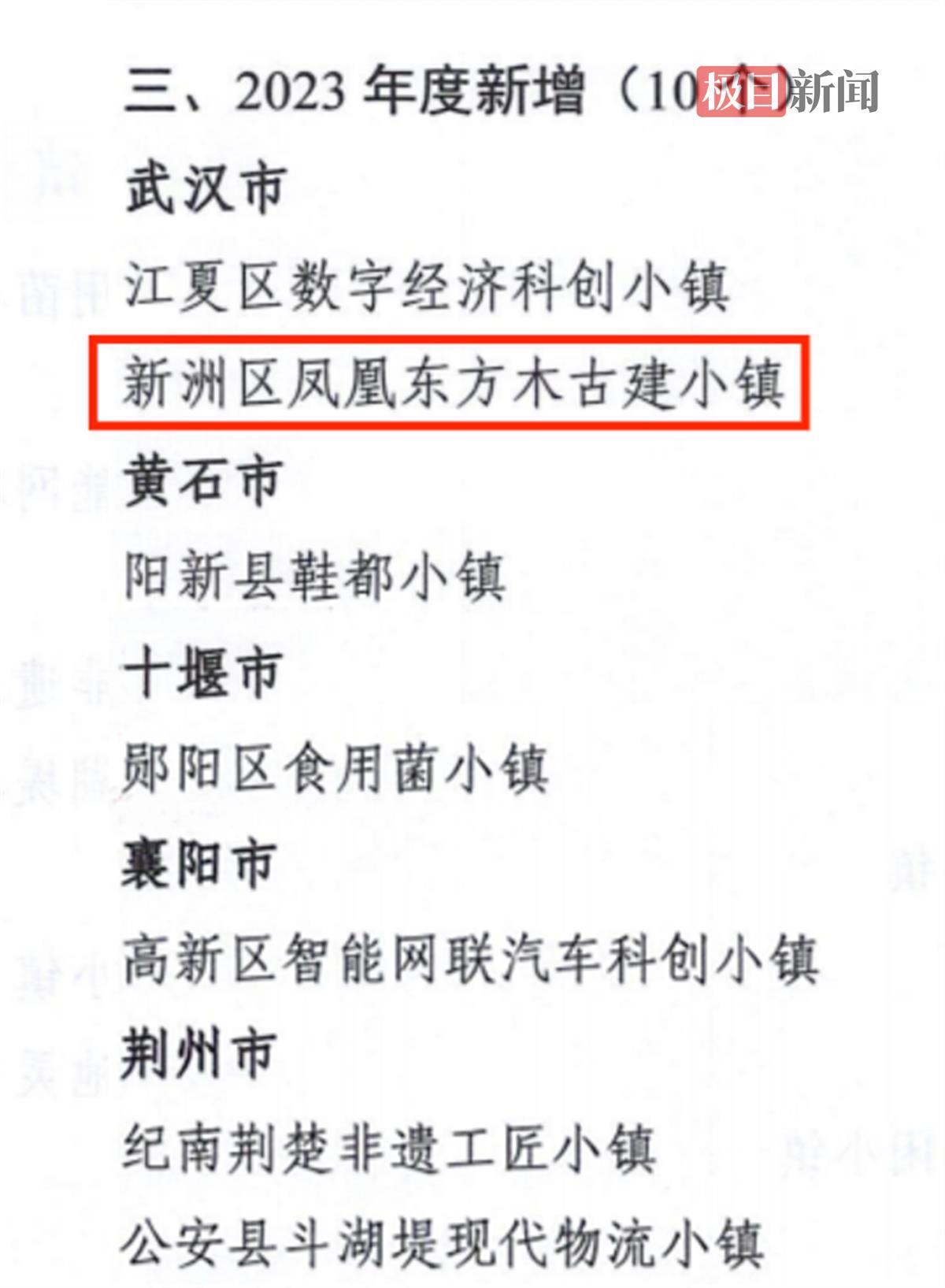 近日,极目新闻记者从武汉市新洲区发改局了解到,2023年度湖北特色小镇创建名单出炉,凤凰东方木古建小镇入选省级特色小镇名录。