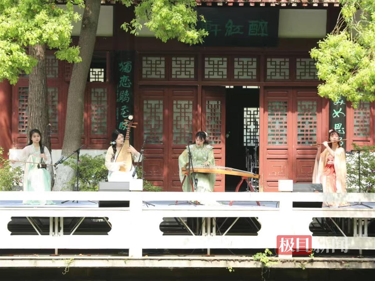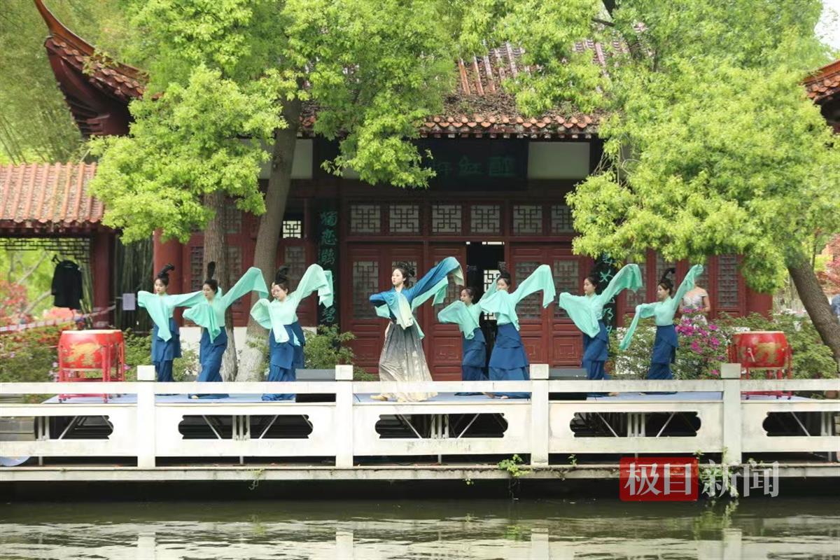 当天“美”上热搜的《唐宫夜宴》舞也来到了青山公园,憨态可掬的唐朝小乐伎,耳目一新的唐装服饰,绯红绚丽的“斜红”妆容等,完美呈现出一幅“盛唐夜宴图”。火爆全网的《只此青绿》今天也被搬到了国风游园会的舞台,青鸾漫舞、山川迭起,仙子一样的小姐姐们为大家演绎了一场惊艳的山水画卷。
