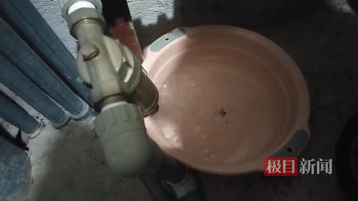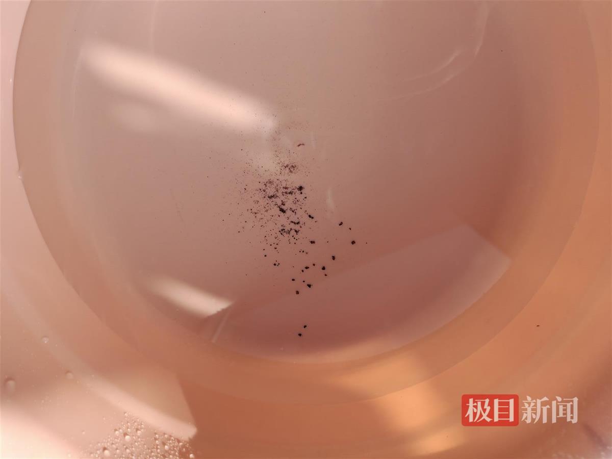 随后,极目新闻记者来到13栋2单元,业主赵女士向记者展示了一张照片。照片中显示,一个装有自来水的盆中,肉眼可见一小撮类似砂状的物质沉积,“这是我这两天拍的,盆子里的水就是在水井水表处开闸放出来的。”