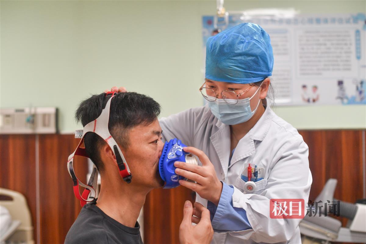 测试前医生为跑友戴好呼吸面罩