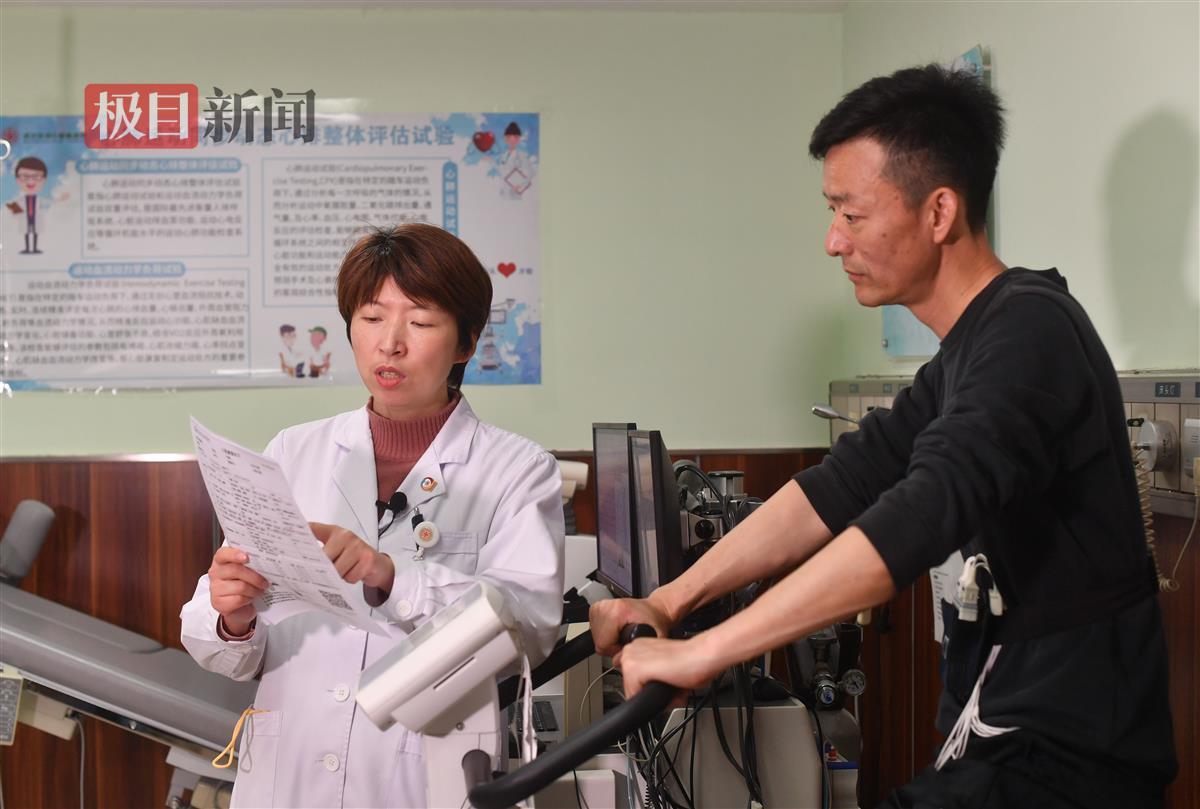 极目新闻记者了解到,武汉亚洲心脏病医院、湖北省中医院、武汉市中心医院等都设有相关测试。医生会通过逐渐递增踏车的功率,模拟日常生活强度至极量运动的强度,测定最大摄氧量、无氧阈、代谢当量、心率储备、呼吸储备、做功效率、心电图变化等全程动态演变,评估运动危险分层,确定是否能耐受,全程半小时左右,最后出具“运动处方”。
