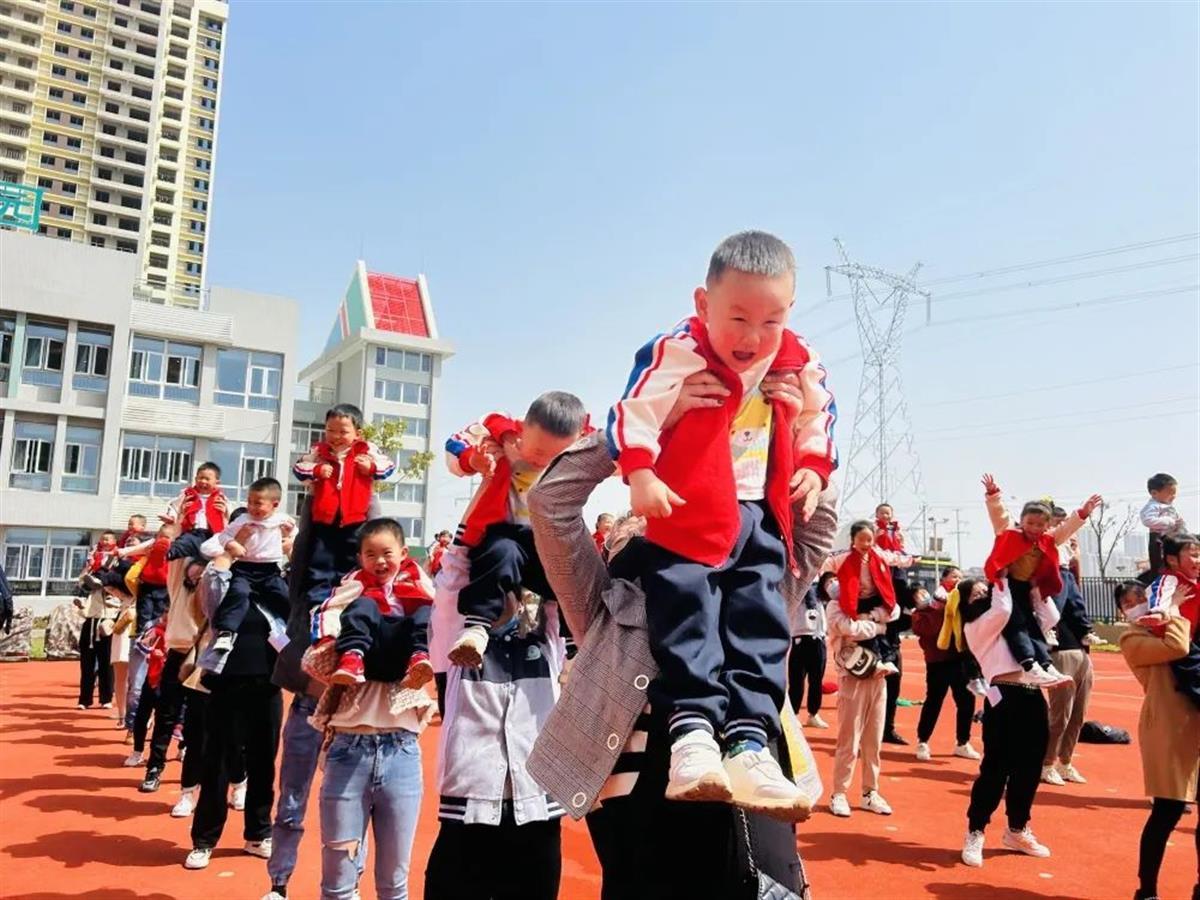 亲子游戏能充分调动孩子们参加体育运动的积极性,拉近孩子和家长之间的距离,在户外活动区域,幼儿在与家长的互动合作中碰撞出精彩的运动火花,幼儿增强了力量、提高了耐力。