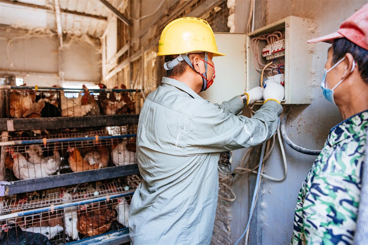 门口响起汽车喇叭声,一辆黄色供电服务车停在院子前,王家文快步走过去,拉开大铁门。“老王,我们把发电机带来了,这就给你装上。”国网武汉市汉南区供电公司湘口供电所副所长宁长敏一边跟王家文打着招呼,一边和同事把发电机从车里抬到鸡舍旁,架起安全围栏,又从发电机牵一条导线连接到配电柜。