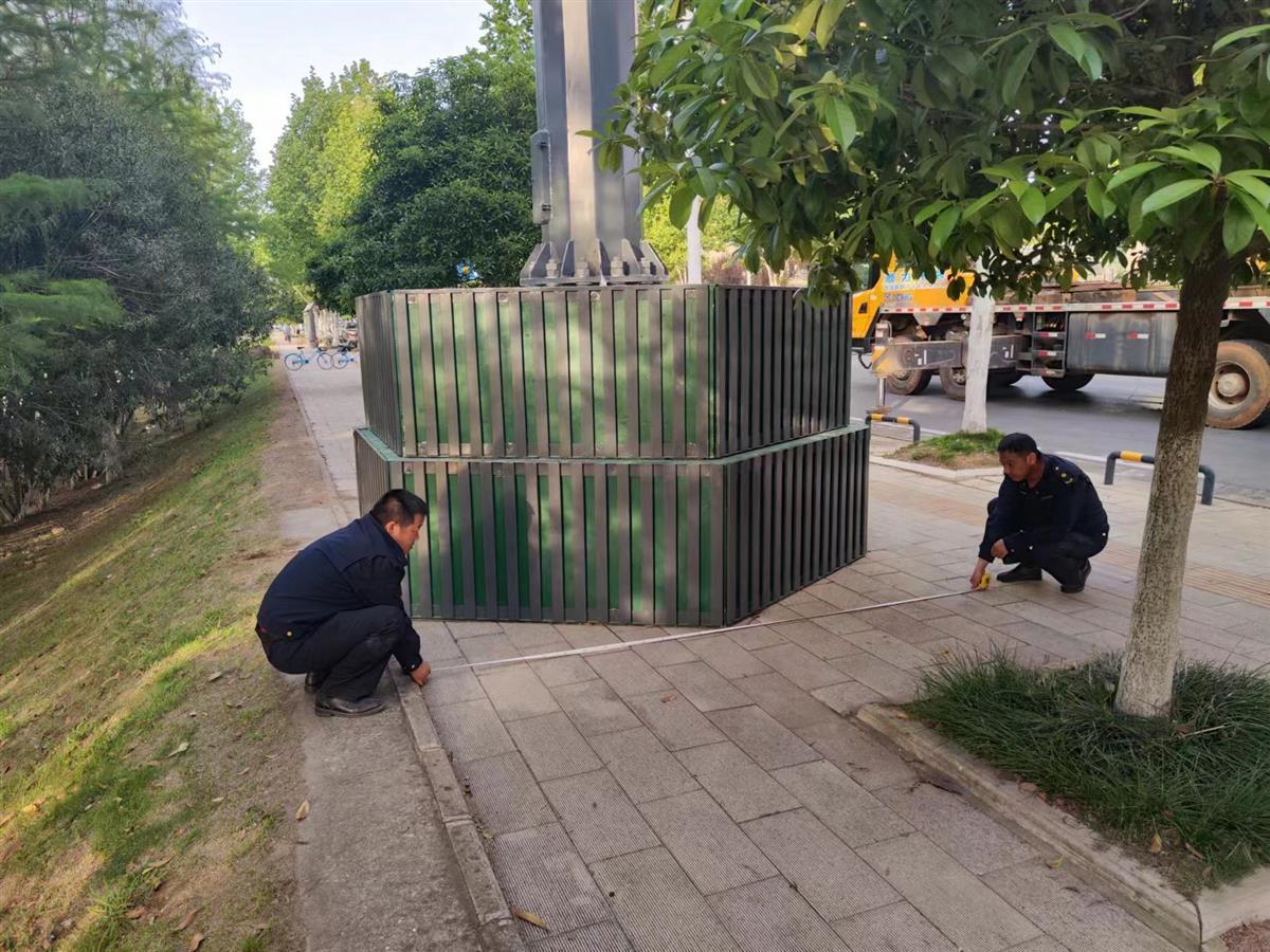 4月16日,江夏区经济开发区大桥园区环湖路附近居民向片区路长反映,环湖路旁人行道上有人在建铁塔,影响市民出行,在江夏经济开发区综合执法中心大桥执法队东北片区路长迅速核查,发现辖区环湖路新建了一处5G信号塔,现场勘察发现该处信号塔占用了人行道,紧邻汤逊湖壹号高层小区23栋楼,有极大的安全隐患。经执法队员多方查实,该处5G信号塔未办理相关的建设手续,属于“黑塔”。为及时的消除安全隐患,还路于民,执法人员立即联系了中国铁塔武汉分公司,请求专业人员给予技术支持。