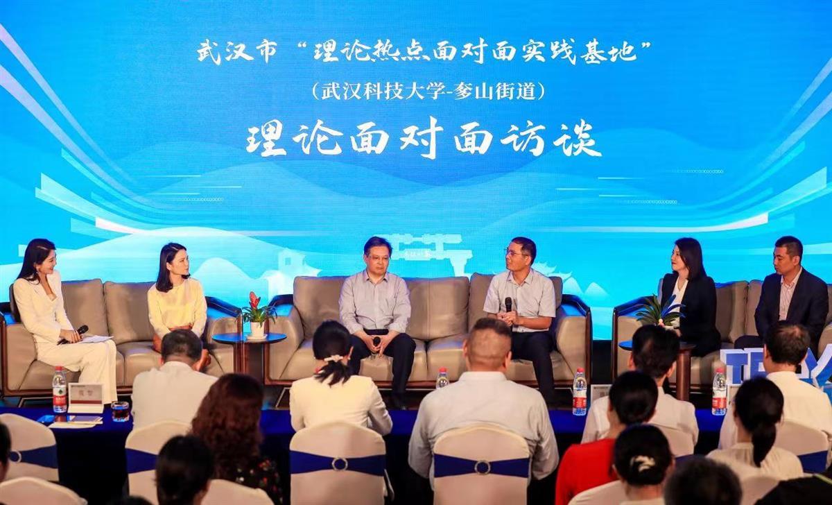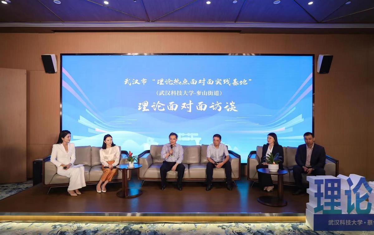 围绕如何理解中国式现代化,科技创新助力高质量发展、推动制造产业升级等话题,武汉科技大学相关学者、教授及蔡甸区奓山街道优秀企业家代表现场进行“面对面访谈”。共同讨论碰撞思想火花,中电光谷联合集团助理总裁黄黎、武汉中设机器人有限公司总经理杨燕、武汉森澜生物科技有限公司总经理菅保森等企业家代表分别结合各自企业实际,分享了各自对中国式现代化的理解。