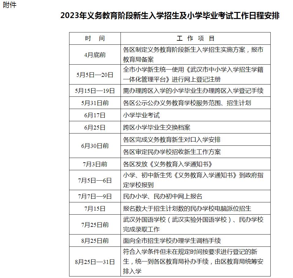 附件:2023年义务教育阶段新生入学及小学毕业考试工作日程安排
