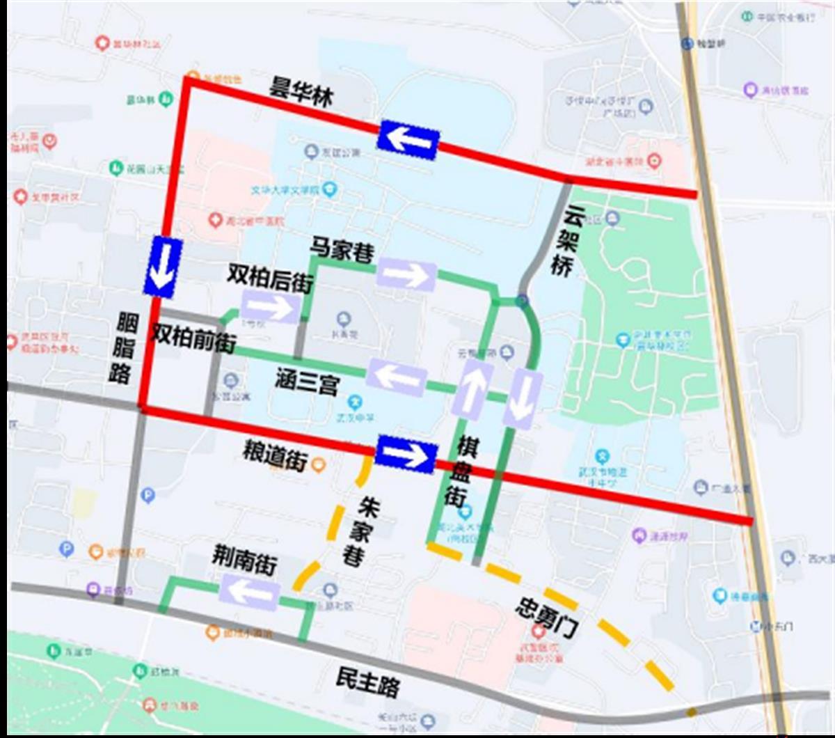 五一假期即将到来,武汉昙华林及周边道路将迎来大量游客。为保障五一期间昙华林片区道路交通安全畅通,武汉交警对周边的交通提出了临时管控方案,具体是: