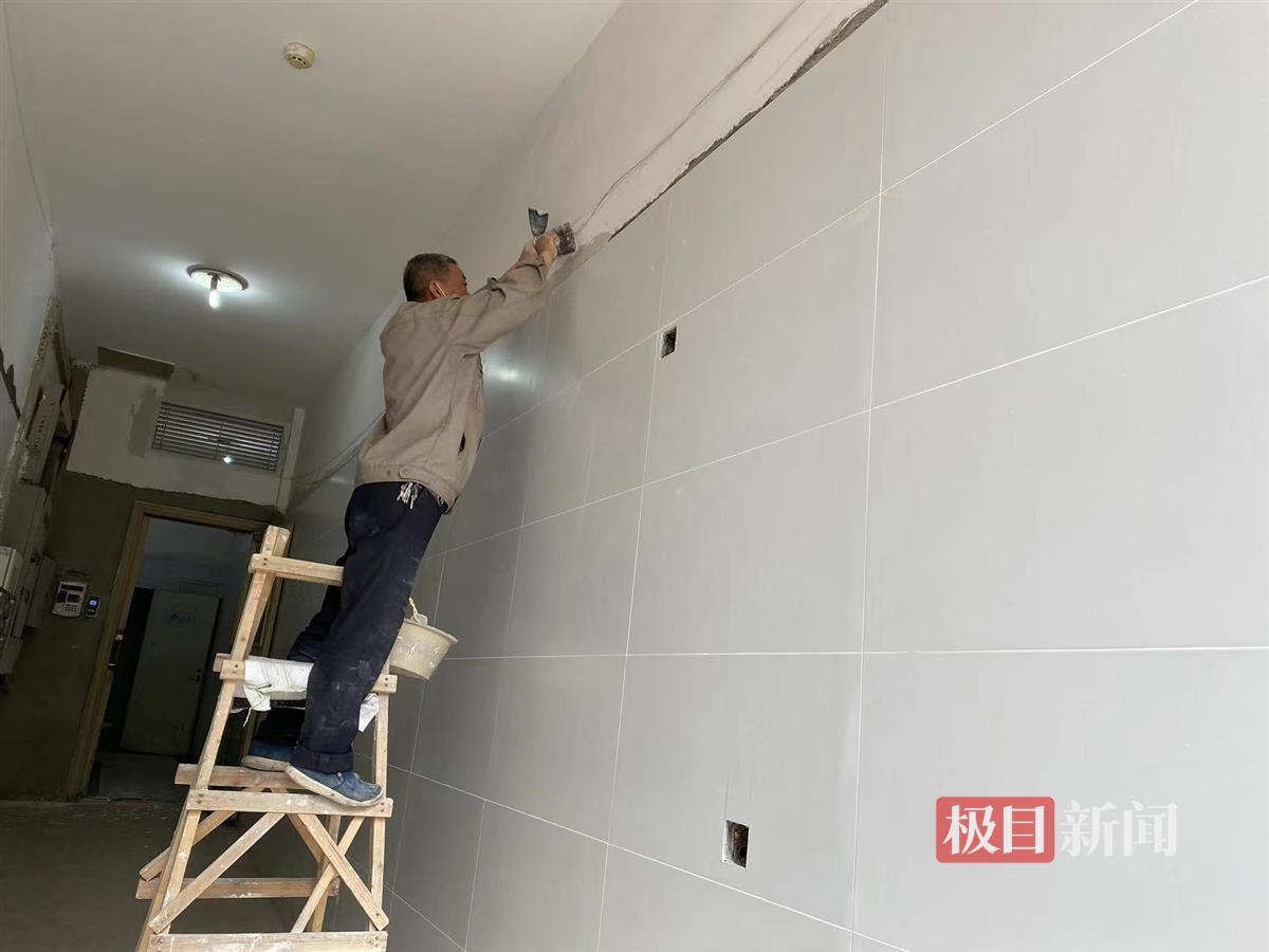 27日上午,极目新闻记者在该小区看到,多个单元楼的楼道墙面已贴上干净、整齐的瓷砖;各楼栋门口,带人脸识别功能的安防设施即将安装;小区内的花坛绿化带,也在加紧改造中……在“简食街”内,摆放着一排排干净整齐的桌椅,有不少居民在这里休息、聊天。