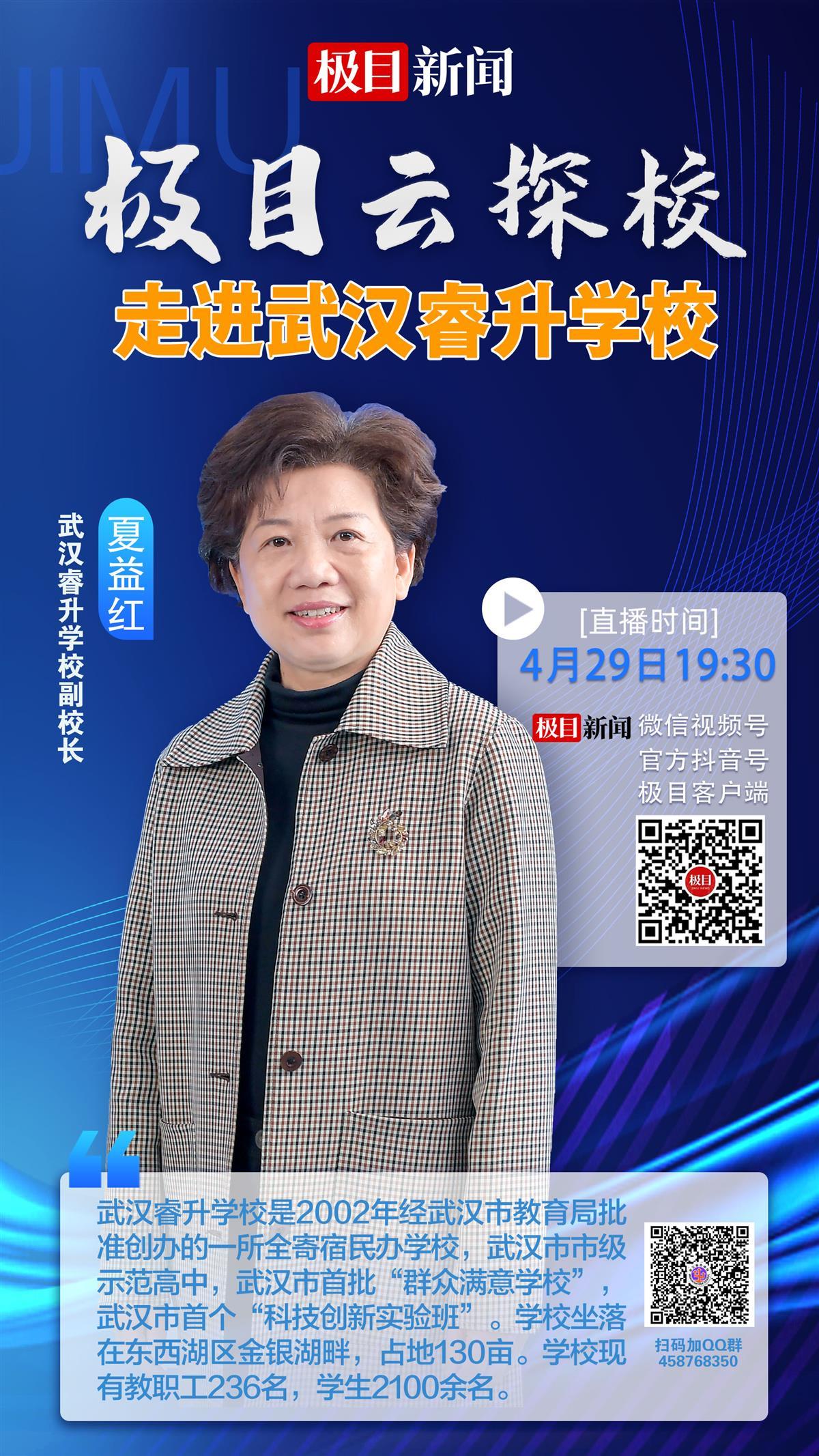 4月29日19:30,请锁定极目新闻“极目云探校”直播间,关注武汉睿升学校。