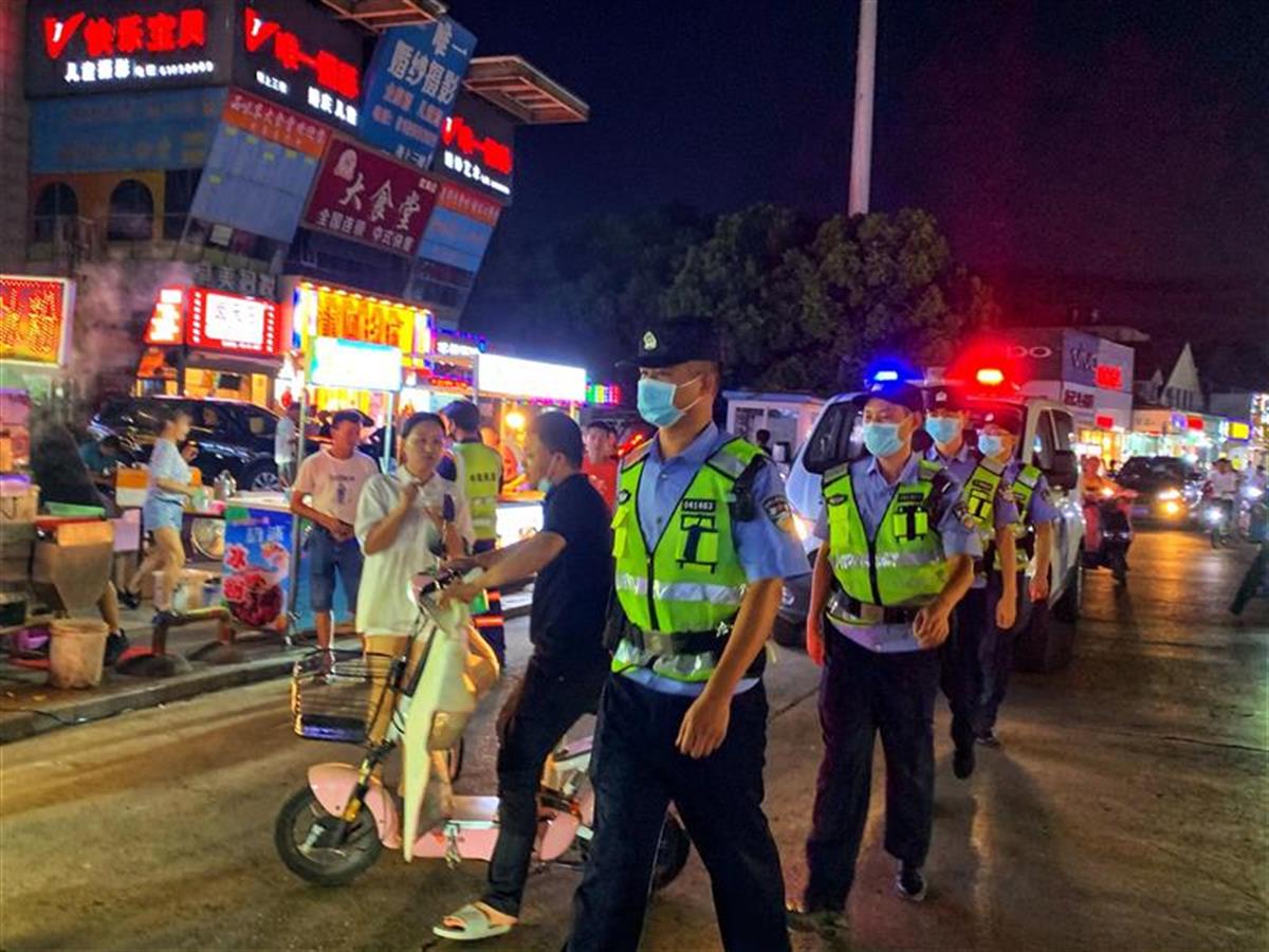 游客在哪里,警务工作就要延伸到哪里。黄陂公安早早将夜市纳入巡逻防控工作的重点,组织巡逻大队和各派出所按照等级化勤务要求,突出重点时段,结合辖区治安状况,科学安排32个巡逻防控单元和33个“1、3、5”分钟快反防控圈,加强警情“三高”部位、治安复杂区域、重点要害部位和主次干道、联通道等巡逻防控,24小时保持战斗状态,不断提高见警率、管事率,守护街头市井的烟火气。