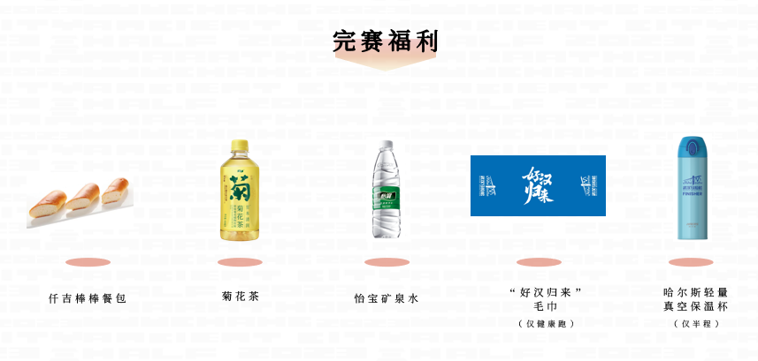 完赛后,将为半程和健康跑所有选手发放怡宝饮用水及菊花茶,仟吉棒棒餐包,帮助选手迅速恢复能量;半程选手还将获得哈尔斯完赛保温杯;健康跑选手将赠送“好汉归来”完赛毛巾。