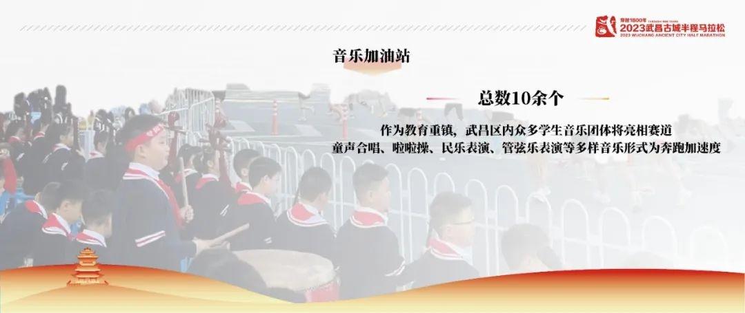 赛道沿途将设置10余个各具特色的加油站。5月7日,童声合唱、啦啦操、民乐表演、管弦乐表演等多样音乐形式将亮相赛道,为选手奔跑加速度。