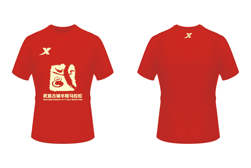 参赛T恤整体设计以红色为底色,胸前印制具有代表性的“武昌印”图案,是武昌红色文化的象征,也代表了蓬勃的朝气和无限的希望。