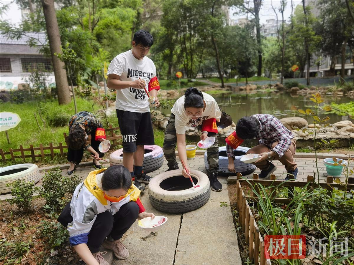 5月5日,武昌区南湖街道都市桃源小区下沉党员、退休党员、小区热心志愿者,在共享花园开展“创意轮胎彩绘 扮靓小区环境”活动,大家在废旧轮胎上作画,为小区增添一抹色彩。