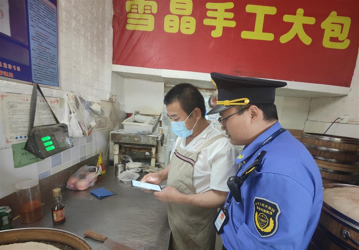 执法队员指导商户“瓶安约”开户 (通讯员供图)