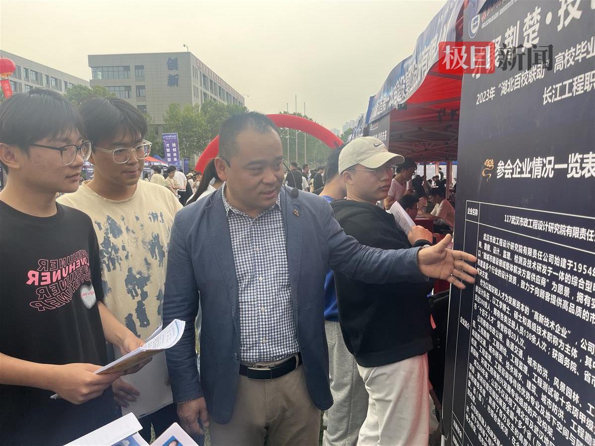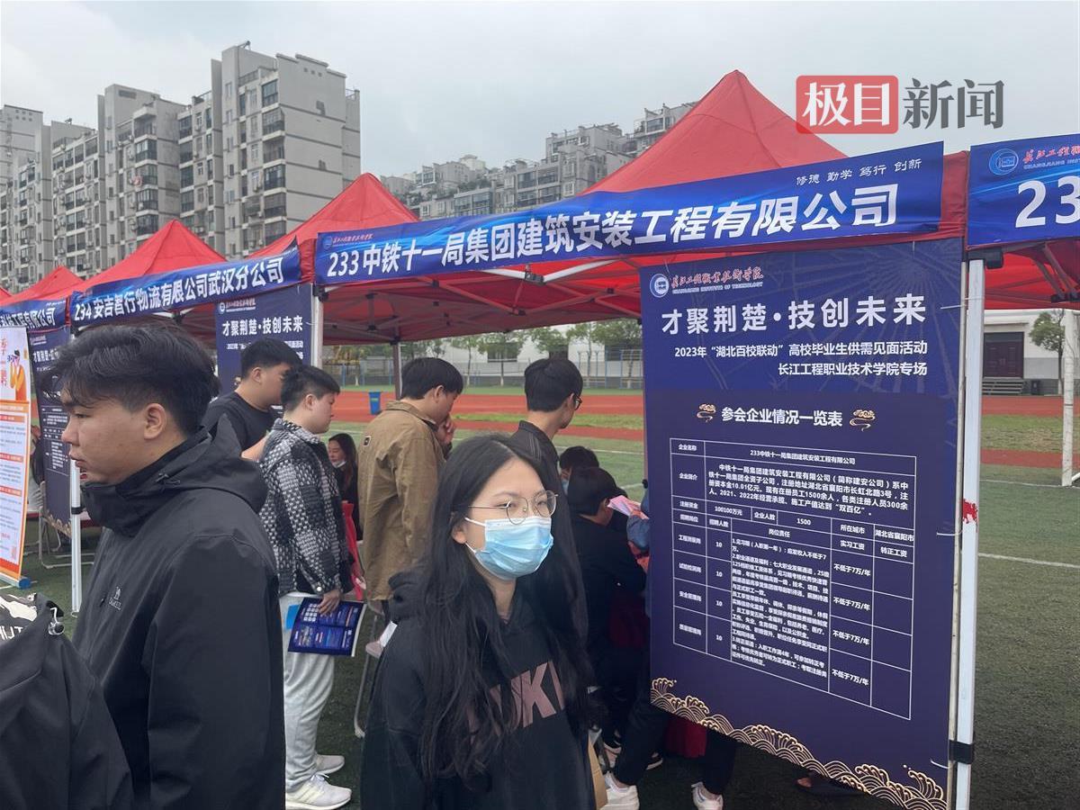 5月11日,“才聚荆楚·技创未来”2023年“湖北百校联动”高校毕业生供需见面会走进长江工程职业技术学院。极目新闻在现场发现,老师们比学生们还要忙一些。