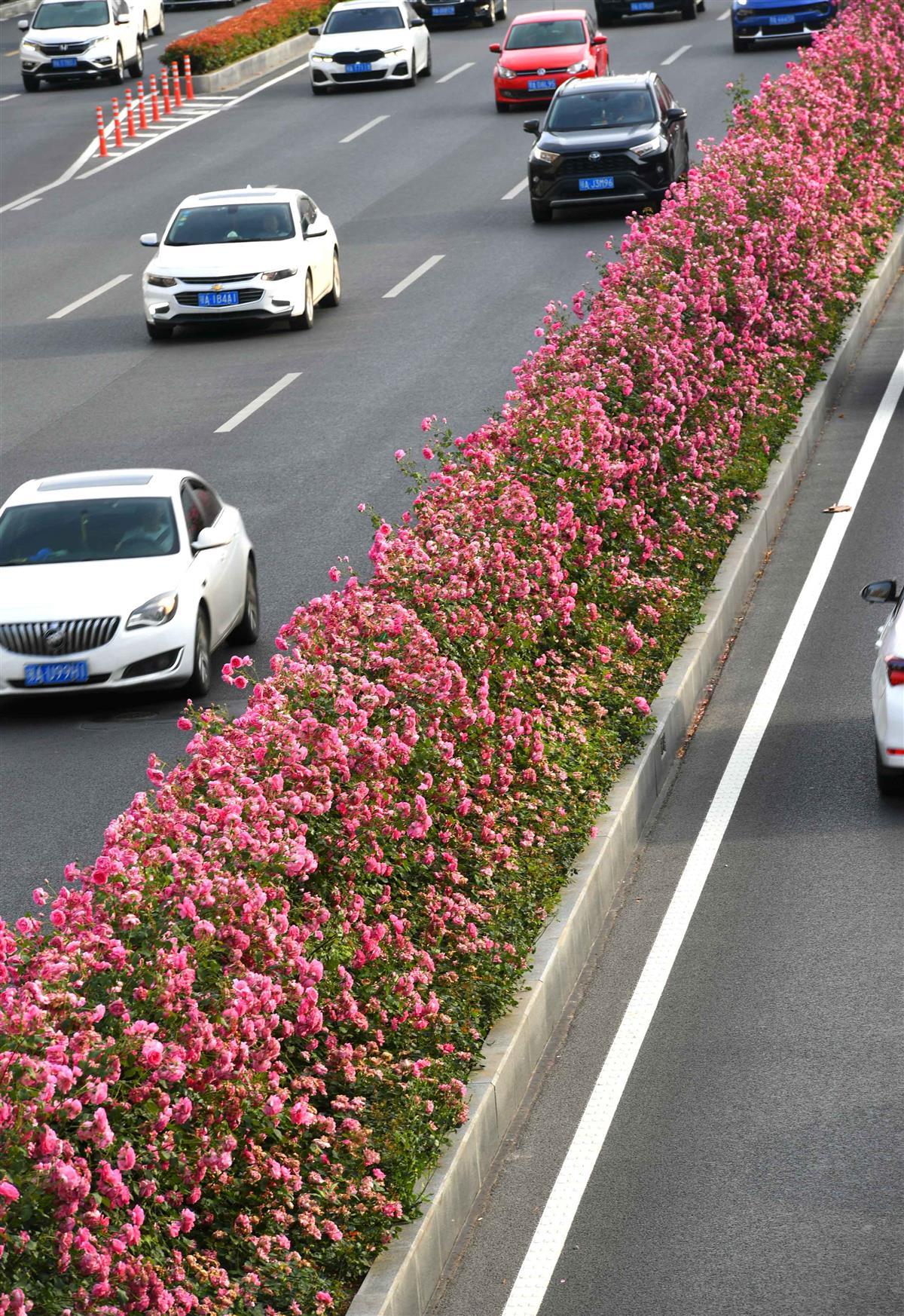 花路最长的东湖新技术开发区光谷大道,6500余株月季陪你行路13000米。