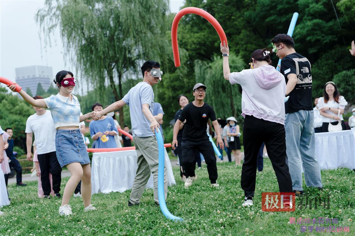 从“飞盘情缘”开始到“气球传水杯”赢取积分的升温,从“蒙眼大战”的相互配合,到“真爱大作战”的心动时刻,通过多个趣味游戏环环相扣,渐次推进,使原本陌生的男女青年在短暂的相处中逐渐熟悉起来,现场欢笑声不断。