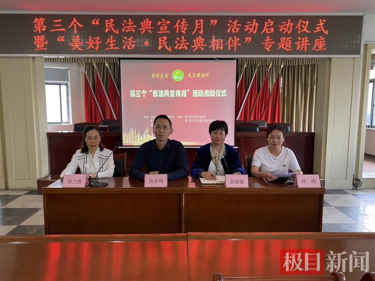 5月22日上午,武汉市计生协会、硚口区计生协会、宗关街道计生协会联合举办以“美好生活·民法典相伴”为主题的“民法典宣传月”活动启动仪式在宗关街道办事处举行。共60余名计生协工作者、居民群众参加讲座。