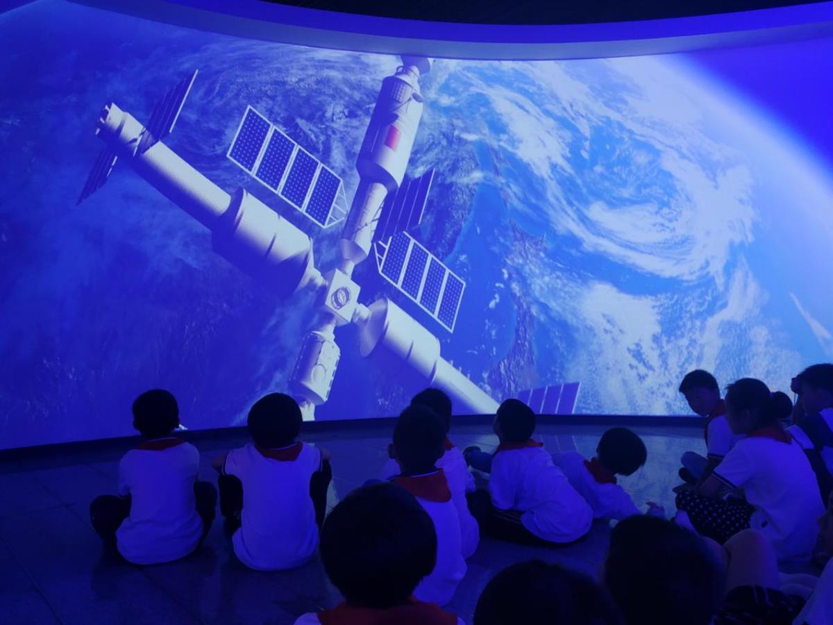 在融合大屏前,家长和学生一起观看了《崇尚科学 自立自强 共筑国家安全》的宣传片,让大家大开眼界。“哇,原来我们国家的科技这么厉害,我看到了飞机、高铁……”“还有芯片、空间站……”观看视频的小朋友边看边讨论。“今天陪孩子来体验,我也深受教育,原来我们国家在科技方面存在这么多风险,以前从没感受到,以后要认真关注。”一位家长表示。