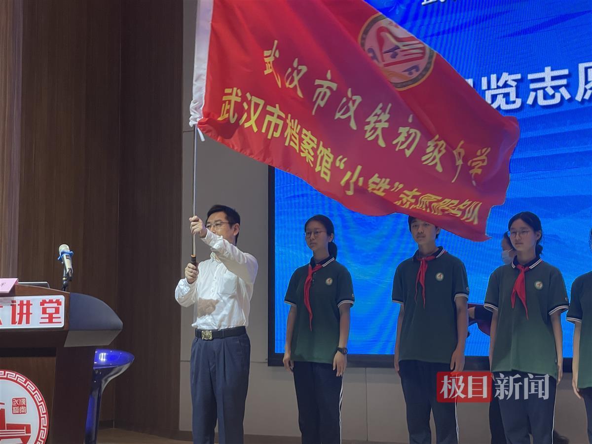 今年以来,“英雄战‘疫’——抗击新冠肺炎疫情武汉保卫战专题展陈”持续火爆,为满足党政机关和企事业单位团队、居民群众参观需求,进一步弘扬和传承志愿者精神和伟大抗疫精神,武汉市档案馆首次创建档案展览志愿讲解队伍,联合武汉软件工程职业学院和汉铁初中,组建了讲解服务志愿团队。活动中市档案馆领导向志愿团队授旗,并向首批学生志愿者颁发了证书。活动现场,武汉市档案馆副馆长马秀兰还与武汉市汉铁初级中学副校长周盈签署共建协议,共建爱国主义教育基地。