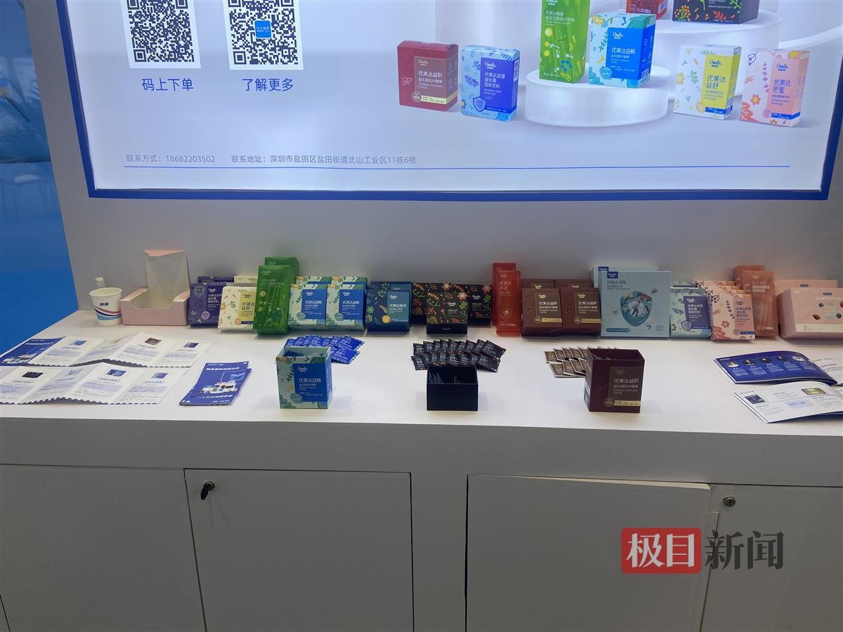 “这东西小朋友能吃吗?”在华大集团营养产品区的展位前,观众罗女士询问工作人员。在她面前的展柜上,摆设了十几种产品,大部分都是小袋包装的,撕开试吃一片,糖果味。