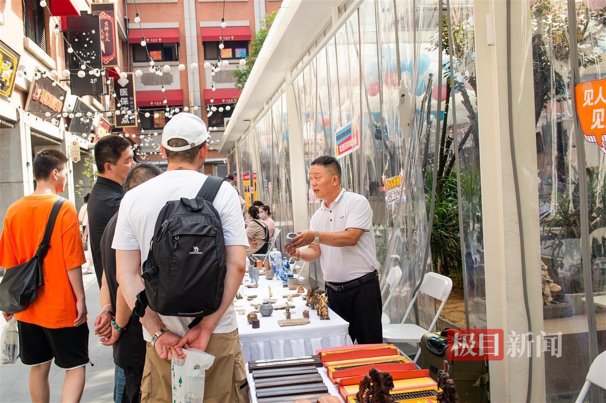 6月10日,“2023年江岸区‘文化和自然遗产日’非遗宣传展示活动暨第五届云上非遗节”活动在武汉市江岸区吉庆街开幕。精美的非遗作品、古韵的文玩和精彩的曲艺表演为市民游客带来一场别致的传统文化视听盛宴。