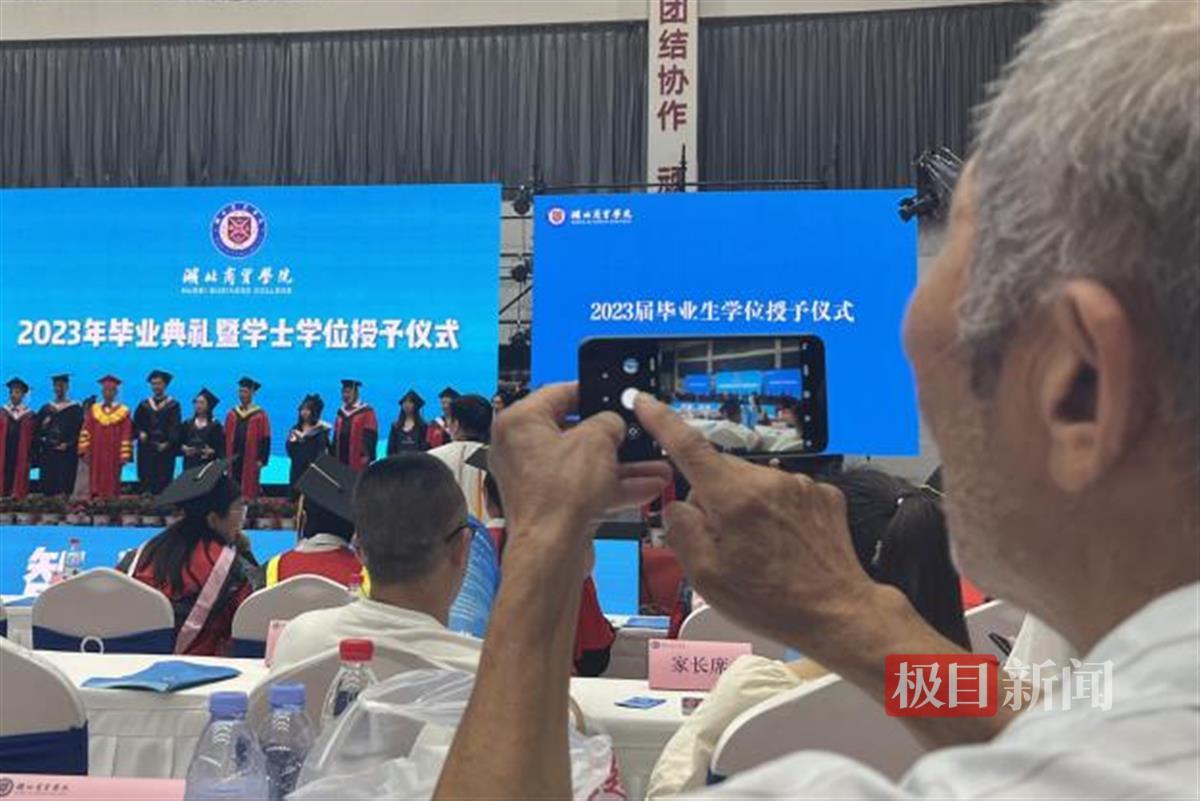 不少家长也出席了毕业典礼,一起陪伴毕业生们走过这一重要人生时刻。会计学院的徐同学邀请了自己的姥姥和姥爷出席典礼,进行“拨穗礼”时两位老人开心地用手机记录下了这一时刻。还有学生家长乘坐了9个多小时的车从山东赶来,看着自己的孩子接过学位证书时她欣慰地表示:“感谢学校四年来对孩子的栽培,也希望他趁着年轻多尝试新事物,能成为对社会有用的人。”