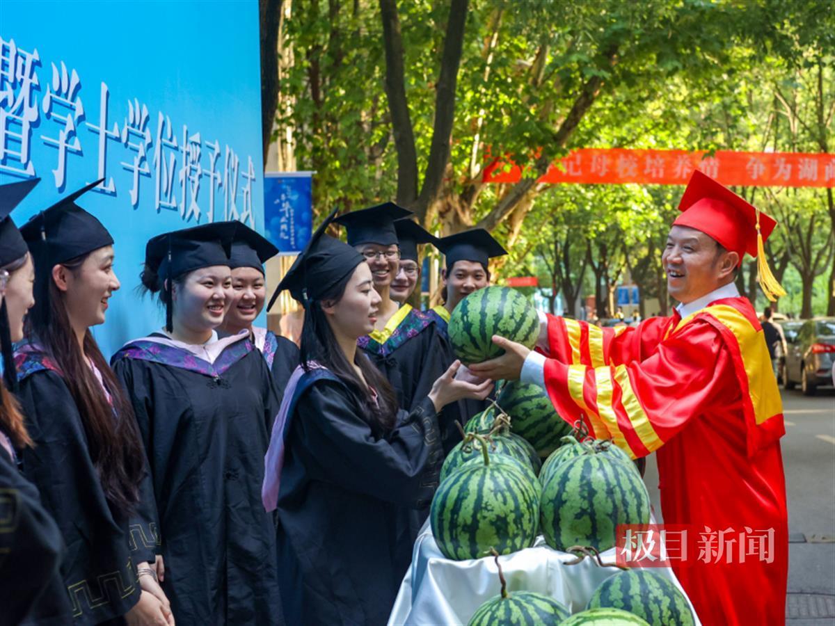校长陈卓国为毕业生们分发西瓜