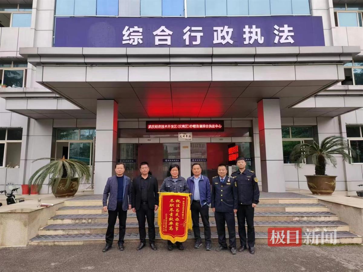 物业公司给纱帽街道综合执法中心送锦旗表谢意