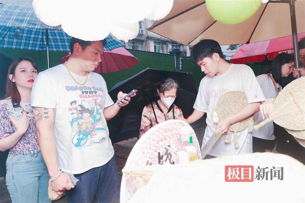 活动第一天,设计之心、江滩、山海关各个点位人气爆满,四唯街道积极协调下沉党员协助维持现场秩序,3000多把团扇一送而空,即使下大雨依旧挡不住游客和周边居民的热情!气球和团扇装饰的花车吸引了不少游客和居民拍照打卡,更有年轻人专程开车过来参与活动。“我们专门开车过来的,还有团扇吗?能遇到你们太棒啦”“好喜欢这个团扇和花车,可以给我们拍照吗?”还有妈妈对孩子普及,“这个是团扇,现在手工编织的很少了哦。”
