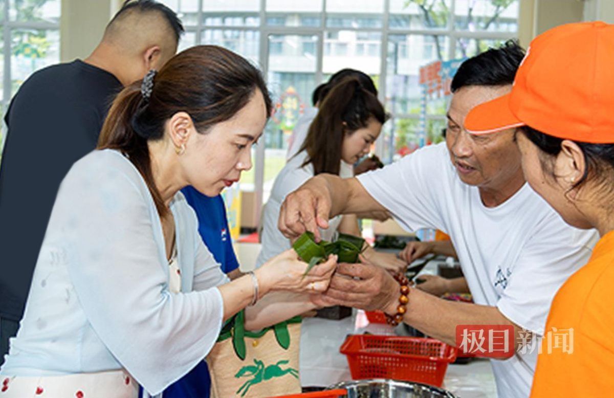 活动当天,千子山园区还为职工家属设置了欢乐的亲子活动,有欢乐的“抖兵乓球”、有趣的“蒙眼踩气球”、展现力量的“爸”气十足拔河游戏和边玩边学的尽情放“粽”亲子合作游戏。各组家庭一起包粽子、编彩绳蛋兜,现场一片欢声笑语,其乐融融。