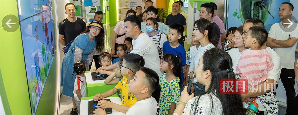 在生活垃圾焚烧发电项目一期,家属们通过观看裸眼VR视频、近距离观看垃圾卸料、自动抓取垃圾等实际生产环节,感叹上了一节生动有趣的环保知识课。