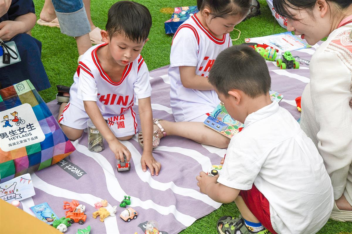 “玩具便宜卖,快来买啊!”“我可以拿这本书跟你换吗……”6月21日,武汉市新洲区问津兰亭幼儿园首届“跳蚤市场”热闹开市。小小萌娃们既当“老板”又当“顾客”,让旧玩具、旧图书、自制手工品在校园内流动起来,寻找属于它们的“新主人”。