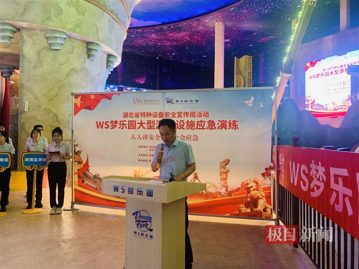 上述场景正是湖北省、市、区特种设备安全生产专业委员会组织开展的大型游乐设施应急演练活动。根据“安全生产月”“特种设备安全宣传周”活动安排,本次模拟演练武商梦乐园蝴蝶之船设备突发故障,乐园及时启动二级应急处置方案。