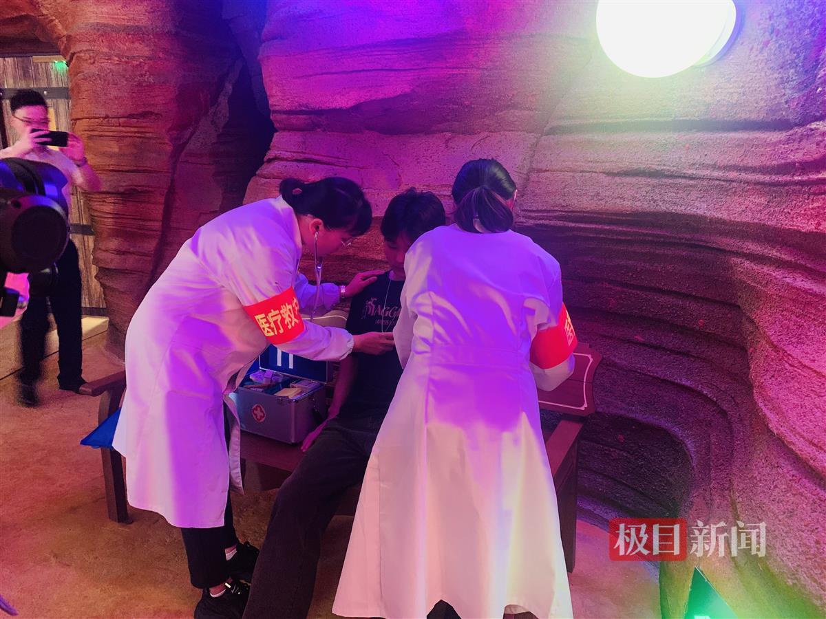 极目新闻记者在现场看到,设备维修组立刻赶往现场,根据应急程序排除和修复设备故障,待座舱安全压杆打开后,运行人员配合维修人员将游客安全有序地救援至设备平台,医护人员及时将晕厥游客搀扶至空旷地带进行紧急救治,“被困”游客终于全部脱险,整个过程不超过10分钟。