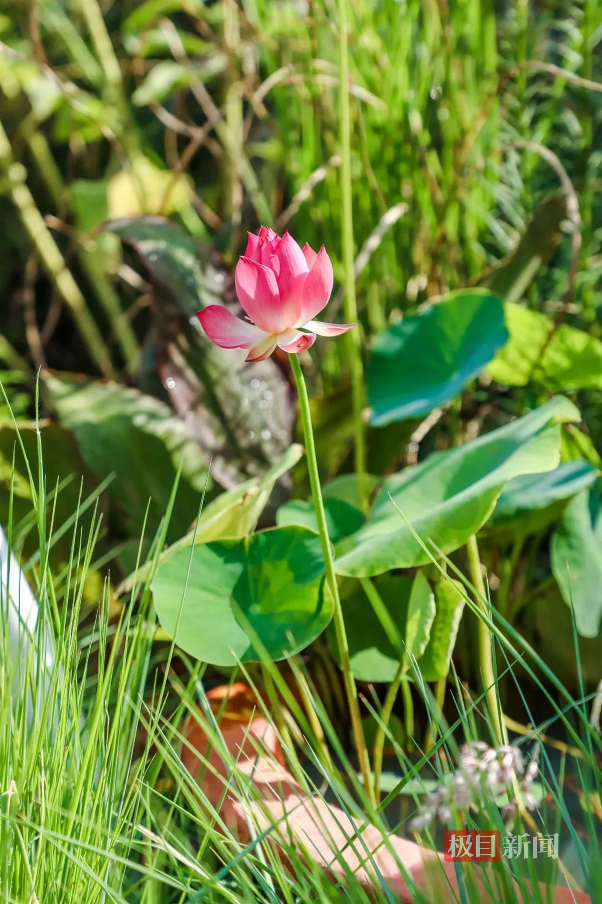 “盛夏光年扎景设计灵感来源于童年盛夏时节荷塘边的自然风光,结合昙华林文艺、时尚的氛围,整体设计风格以野趣、自然、清新为主。”武昌城管绿化队副队长王建红介绍。
