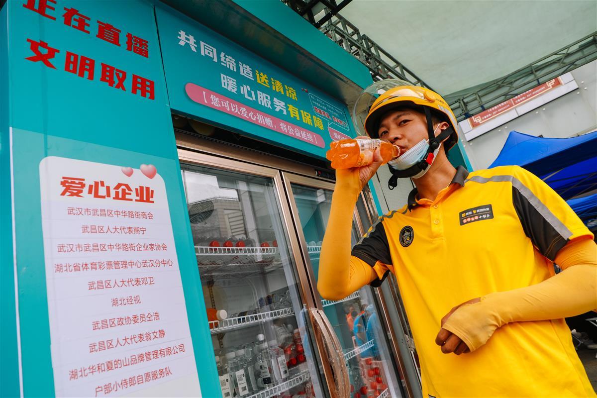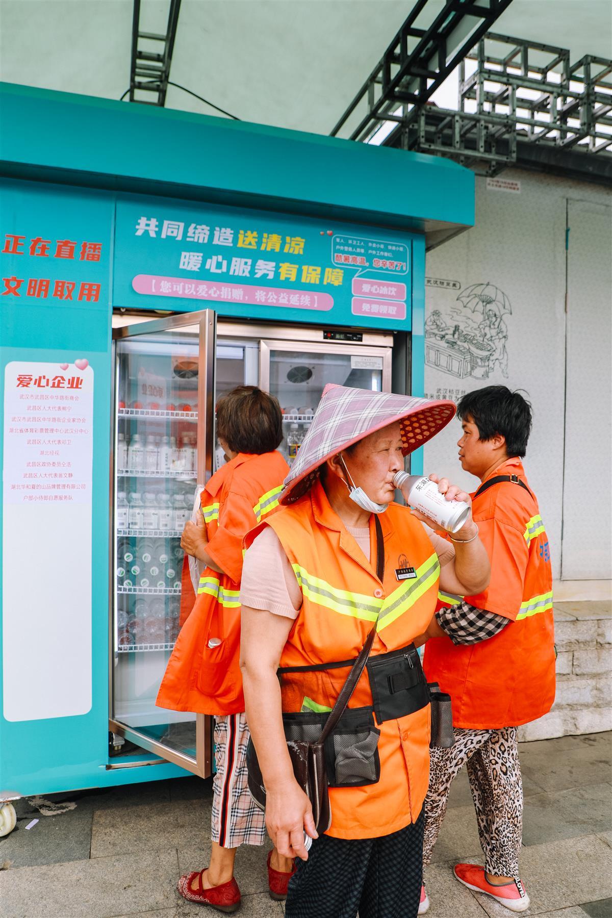 这个夏天,“爱心冰箱”将陆续出现在户部巷、粮道街、黄鹤楼街、大智路京汉城市广场、吉庆街、万松园、水塔街、南湖街平安路、阅马场、武昌火车站,免费为环卫工人、外卖员、快递员、建筑工人、城管队员等户外工作者提供冷饮,感谢他们烈日下的辛勤付出。“‘爱心冰箱’这个项目很有意义,我们很愿意和户部巷一起来做这个事情,也感谢户部巷的邀请。”万松园商会的代表说。