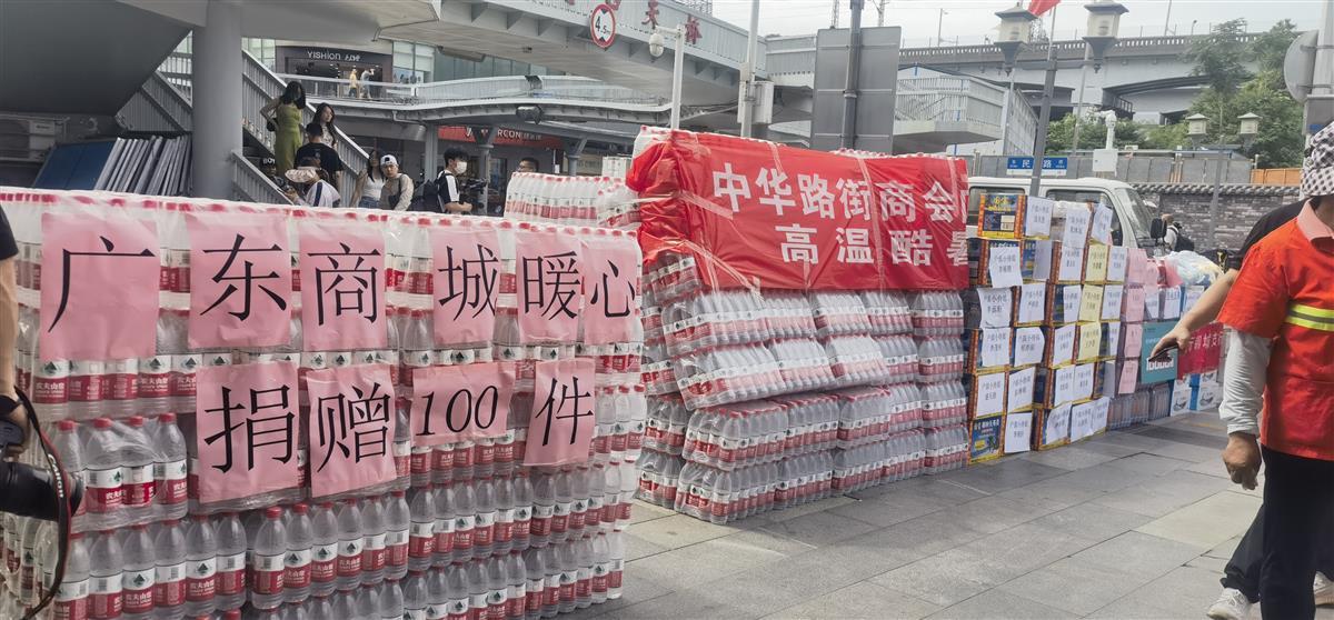 人大代表、政协委员、“户部小侍郎”志愿者服务队等各界爱心人士也纷纷积极捐钱捐物,一箱箱矿泉水带着对户外工作者们的关爱运到户部巷,活动现场共收到捐赠的爱心饮品1000箱,武汉市慈善总会也为参与活动的爱心团体和个人颁发了捐赠证书。