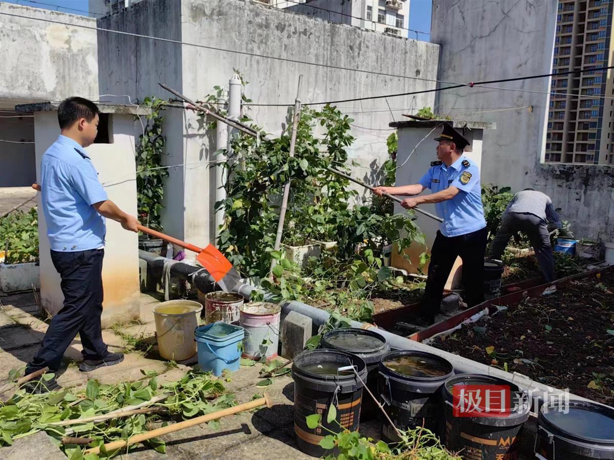 业主在楼顶公共区域堆放土壤,施用沤肥,种起了瓜果蔬菜,这样种出的菜,吃起来很香,但却污染了环境,“臭”了全体业主的空气。7月3日,武汉市江夏区纸坊街综合执法人员清理了嘉和世纪华庭小区楼顶的私家菜园,还居民干净整洁的环境。