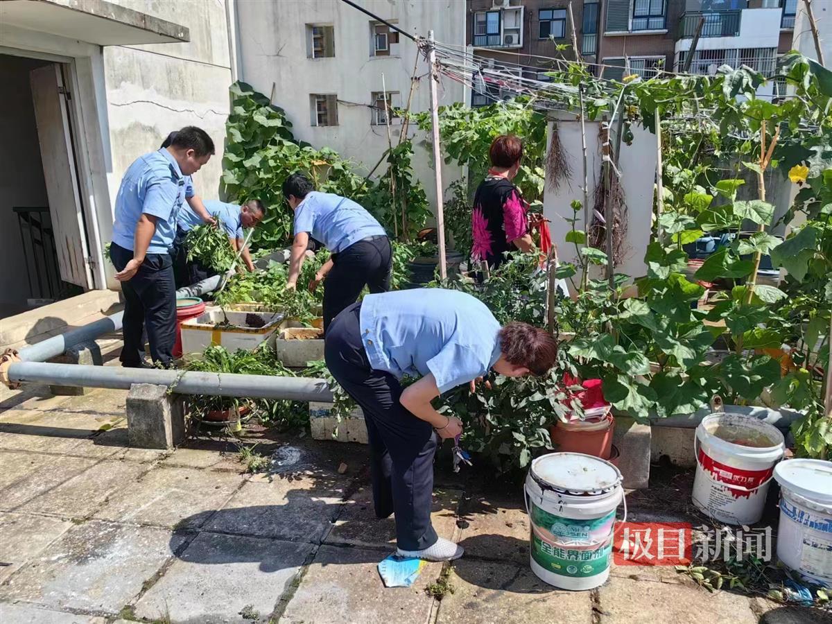 7月3日,陈时志主动联系三潭社区及嘉和世纪华庭小区业委会,三方协作将楼顶种菜进行清理,还居民一片干净整治的楼顶环境。