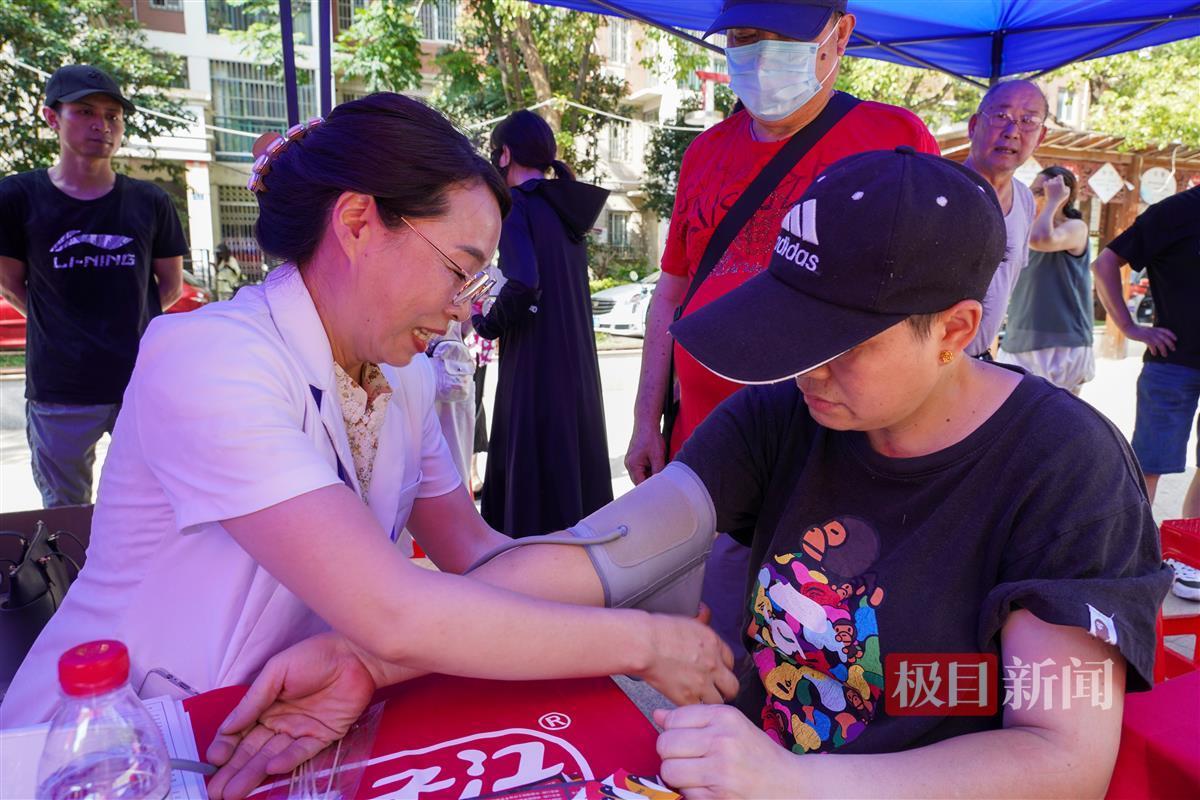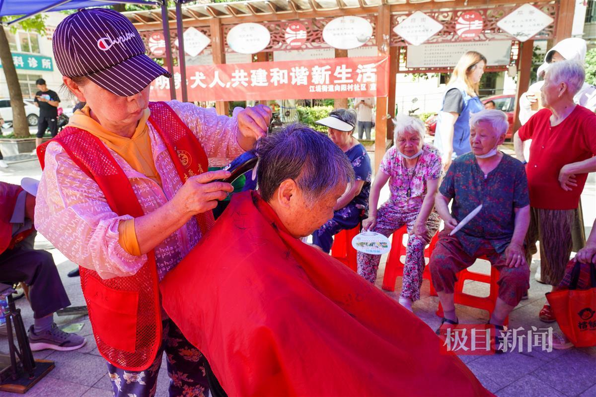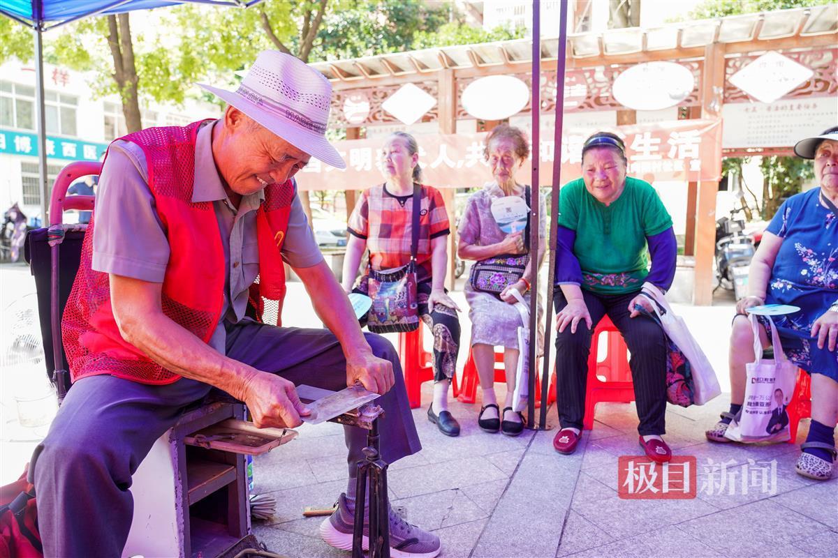 在磨刀摊位一侧,满头银发的张奶奶乐呵呵地坐在凳子上理发,与身旁等候的其他居民们聊着家常,还不忘向理发师傅说着感谢:“这么热的天我们都不想出远门去剪头发,没想到这次活动就直接把理发师给我们请到了自家楼下!”